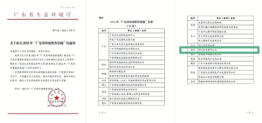 近日,廣東省生態(tài)環(huán)境廳正式發(fā)布關(guān)于命名2022年“廣東省環(huán)境教育基地”的通知,陽江核電有限公司成功入選。