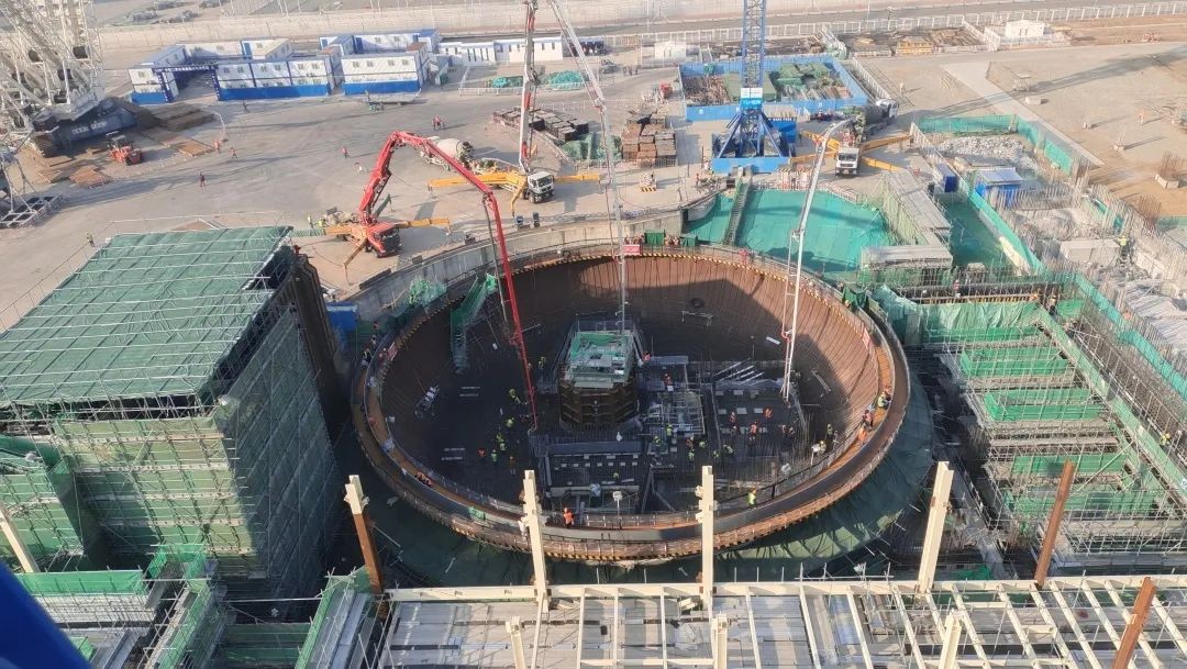 2022年12月31日21時54分,中核二四經過一天一夜不眠不休的奮戰,順利完成海陽核電二期3號機組反應堆廠房二、三層施工,共澆筑混凝土1682.5立方米。該節點的完成,為后續CA01模塊吊裝奠定了堅實基礎,也標志著二期工程2022年度節點目標全面收官。