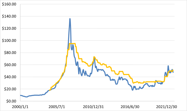 2022年12月,NNSA基于美國鈾儲備計劃,與5家美國鈾生產商簽訂110萬磅U3O8合同,分別是enCore Energy、Energy Fuels、Peninsula Energy、Uranium Energy Corp.和Ur-Energy,采購價格在59.50美元/磅至70.50美元/磅之間,5份合同總價值約為6780萬美元。