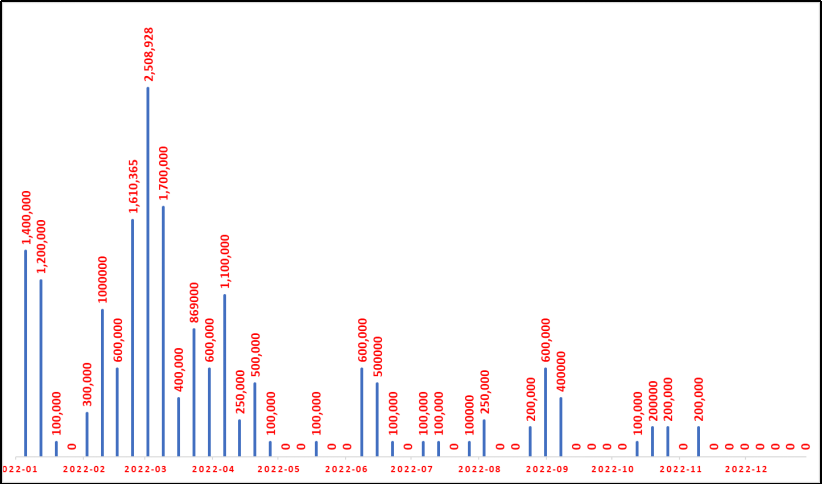 2022年SPUT每周采購(gòu)情況(縱軸單位:磅)