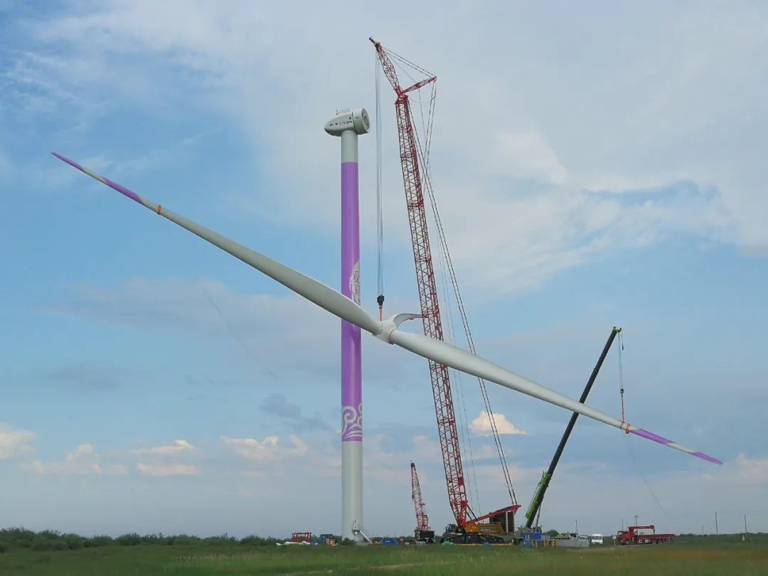 中廣核興安盟300萬千瓦風電基地是革命老區風電產業幫扶項目,一期100萬千瓦項目已于2022年6月29日全容量投產,成為全國首個百萬千瓦級陸上風電大基地。目前,二期200萬千瓦項目正在建設中,二期項目共安裝472臺風力發電機組,目前已完成吊裝166臺。依托該項目,中廣核在興安盟布局了“一園一校一地二場”,形成了以重大項目整體帶動區域經濟、拉動產業、改善民生的“新能源產業循環幫扶模式”。