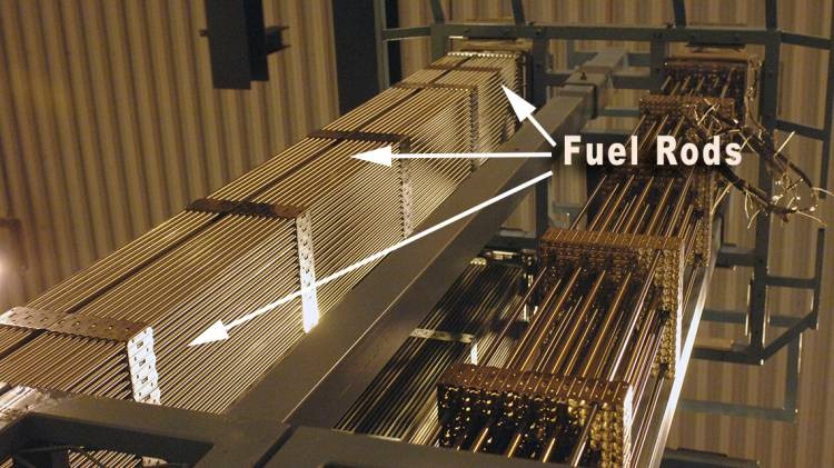 核反應堆中的燃料棒主要由鋯合金制成。這些長長的金屬管中含有可裂變材料的顆粒,通常是氧化鈾顆粒。(圖片: IAEA)
