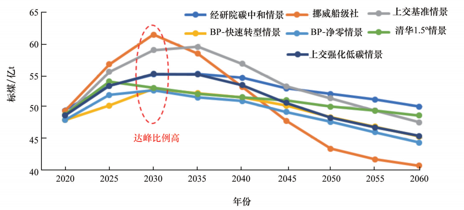 2035年,是中國(guó)“雙碳”戰(zhàn)略部署從第二個(gè)階段向第三個(gè)階段轉(zhuǎn)變的第一個(gè)五年,也是2030年碳達(dá)峰后的首個(gè)五年計(jì)劃收官年。而由于“雙碳”戰(zhàn)略部署深度關(guān)聯(lián)經(jīng)濟(jì)社會(huì)的全面系統(tǒng)變革,中國(guó)過往發(fā)展模式的慣性影響預(yù)計(jì)在短時(shí)內(nèi)仍將存在。根據(jù)多家機(jī)構(gòu)研究預(yù)測(cè)的結(jié)果(圖1、圖2),2030—2035年,是未來(lái)中國(guó)能源發(fā)展中“不穩(wěn)定”的消費(fèi)平臺(tái)期和減排過渡期。反映在圖1和圖2中,不同機(jī)構(gòu)基于再電氣化和清潔能源替代等現(xiàn)代化進(jìn)程的不同進(jìn)度節(jié)點(diǎn),對(duì)該時(shí)期內(nèi)一次能源消費(fèi)量和碳排放量的變化趨勢(shì)預(yù)測(cè)出現(xiàn)較明顯的差異;在2035年后,各方的預(yù)測(cè)趨勢(shì)總體趨于一致,但一定程度上仍受到2030—2035年預(yù)測(cè)的邊界條件的制約。所以,2035年將是中國(guó)實(shí)現(xiàn)“30·60雙碳”目標(biāo)的關(guān)鍵時(shí)點(diǎn),其重要性在于在實(shí)現(xiàn)碳達(dá)峰后,如何做好這個(gè)過渡,從而能夠“安全、穩(wěn)定”地走向碳中和。而從現(xiàn)在至2035年前,如何穩(wěn)步實(shí)施清潔能源規(guī)模化替代以實(shí)現(xiàn)能源安全穩(wěn)定供應(yīng)、構(gòu)建新型電力系統(tǒng)以推動(dòng)再電氣化進(jìn)程、梯級(jí)利用提高能源利用效率乃至突破碳捕獲、利用與封存技術(shù)(CCUS)等碳匯技術(shù)等,推動(dòng)實(shí)現(xiàn)能源現(xiàn)代化發(fā)展,則將是影響中國(guó)能源體系在碳達(dá)峰后,一次能源消費(fèi)和碳排放拐點(diǎn)盡快下行,最終實(shí)現(xiàn)“雙碳”戰(zhàn)略部署的關(guān)鍵環(huán)節(jié)。