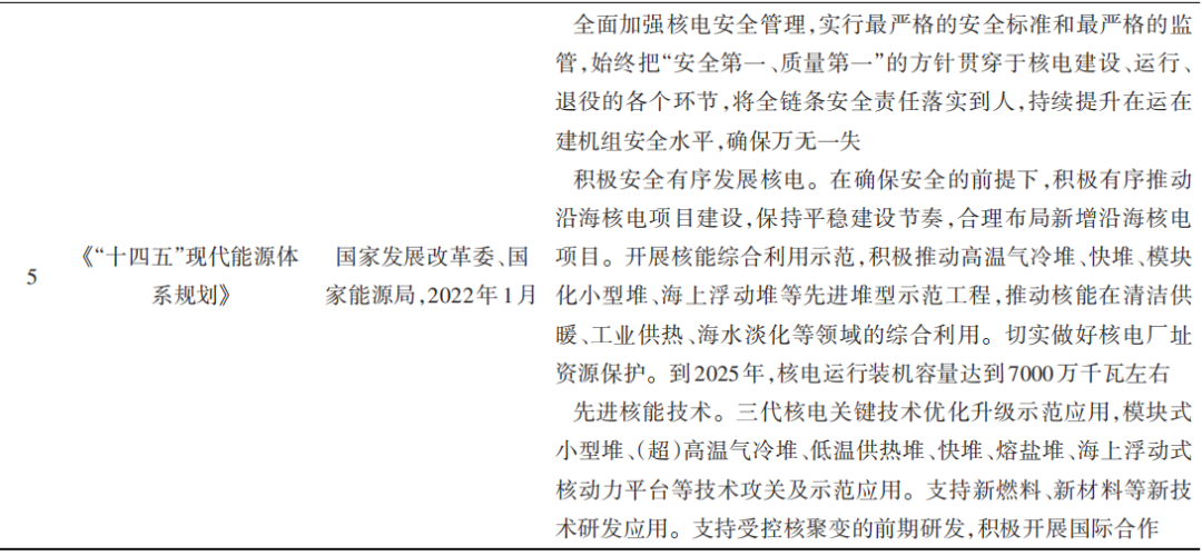 表2 相關(guān)政策文件對(duì)核能發(fā)展做出的部署要求