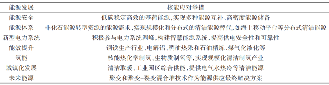表3 “雙碳”戰(zhàn)略下中國(guó)能源發(fā)展對(duì)于核能現(xiàn)代化發(fā)展需求及應(yīng)對(duì)措施