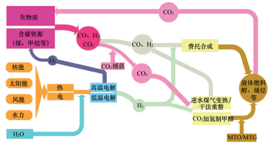 復(fù)合系統(tǒng)在低碳情景下大規(guī)模生產(chǎn)液體燃料和化學(xué)品等,能夠作為國(guó)內(nèi)能源需求的有力保障,并降低石油的對(duì)外依存度;實(shí)現(xiàn)CO2的減排與資源化,有助于提高過程碳效率;提高核能及可再生能源等低碳能源的能效,并且降低系統(tǒng)投資與產(chǎn)品單位生產(chǎn)成本。