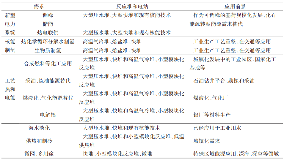 表4 面向2035年的核能現(xiàn)代化發(fā)展需求和應(yīng)用前景