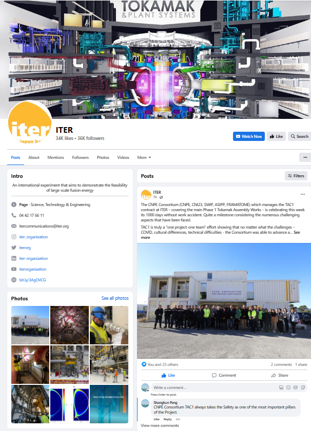 ITER國際組織在社交媒體FACEBOOK、LinkedIn等網站上專門報道了此次活動,評價稱“TAC1項目團隊克服了各種挑戰——COVID、文化差異、技術困難,充分展現了One Project-One Team的協作精神”,并肯定了CNPE聯合體積極推進項目建設,實現了杜瓦底座、杜瓦冷屏、超導磁體等各項主機組裝工作關鍵里程碑節點。
