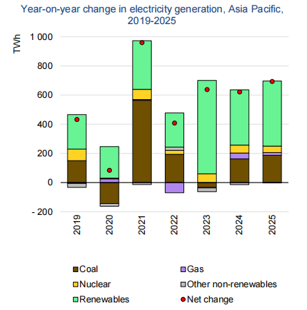 國際能源署預(yù)計,到2025年,亞太地區(qū)燃煤發(fā)電量在總發(fā)電量中的占比將降至52%,低碳能源發(fā)電量占比將升至38%。2023—2025年,該地區(qū)電力需求將以每年4.6%的速度穩(wěn)步上升,其中66%的增量需求將由可再生能源滿足。