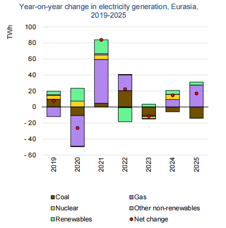 歐亞地區(qū)(即前蘇聯(lián)解體后各個加盟共和國所在的地區(qū))2022年電力需求同比增長1.5%,與2021年高達6%的增長率相比明顯放緩。此外該地區(qū)70%的電力需求增量集中在上半年,下半年增長率一度低至1%以下。導(dǎo)致這一情況主要原因是,受俄烏沖突影響,俄羅斯以及與之在經(jīng)濟和政治上保持密切聯(lián)系的國家經(jīng)濟持續(xù)惡化。根據(jù)國際能源署預(yù)測,2023—2025年,該地區(qū)電力需求年均增長率將低于1%。