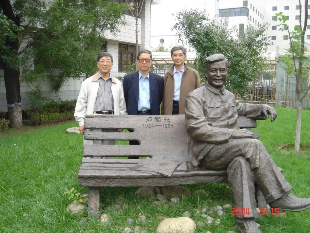 三位院士與鄧稼先雕像合影,左一為胡思得