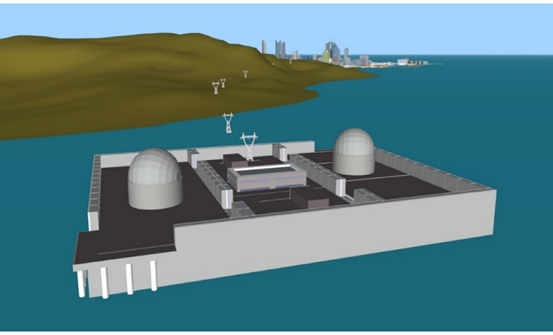 GBS型核電站以模塊化設計的方式進行建造,隨后通過拖船將建造好的重力基礎結構模塊拖曳至海上浮動核電站系泊點,并利用壓載系統將其放置在海床上,最后利用鋼筋、后張鋼索和水泥漿將其進行剛性連接,將其用作核電裝置的承載平臺。因其承載結構具有單一性,所以能夠有效降低管線和電纜的相關風險,并能夠減少地震帶來的影響。同時,該型核電站設計概念處于陸上和海上核電站之間,可以部分減輕惡劣海洋條件對其載體造成的影響。不過,GBS型核電站與其他類型的浮動式核電站相比還存在一定劣勢,目前仍無法避免海嘯的影響。