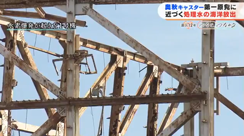 福島第一核電站1號機組建筑鋼筋裸露在外(福島電視臺)