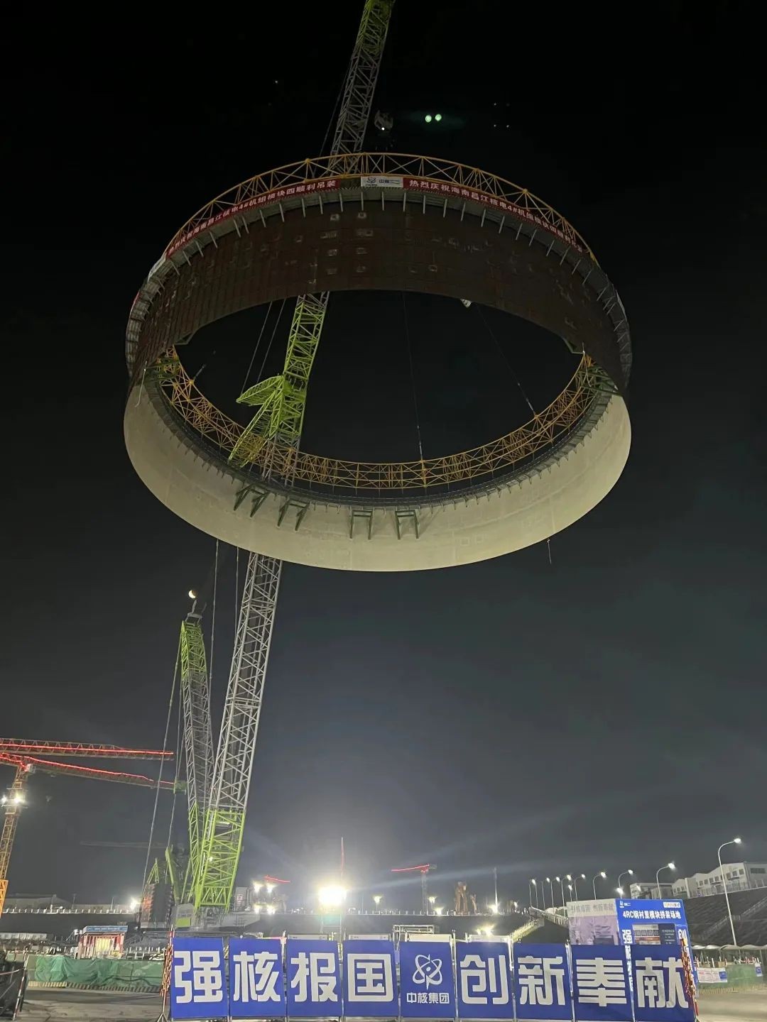 2023年3月17日8時08分,海南昌江核電廠4號機組核島反應堆廠房內殼鋼襯里模塊四吊裝就位,歷時3時10分,整體吊裝過程安全、可控。