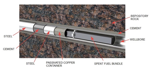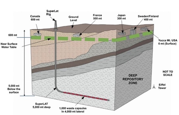 圓柱形膠囊形式的廢物可以快速方便地放置在這些深倉庫中,只需幾個月就可以鉆孔。