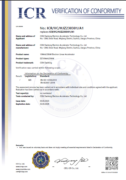近日,中廣核達(dá)勝“10MeV/20kW直線加速器”產(chǎn)品順利通過(guò)歐盟CE認(rèn)證,意味著該款產(chǎn)品獲取了進(jìn)入歐盟市場(chǎng)的許可證,為后續(xù)公司加速器產(chǎn)品出口土耳其及歐盟國(guó)家提供堅(jiān)實(shí)基礎(chǔ)。