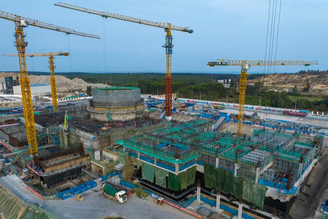 “那邊正在施工就是3、4號機組,半圓穹頂?shù)氖?lsquo;華龍一號’。這邊建的是‘玲龍一號’,全球第一個小堆。”離開汽輪機廠房,工作人員又介紹起正在施工的機組情況,“都是自主知識產(chǎn)權(quán)的堆型,我們稱其為‘雙龍齊飛、三堆共建’,在別的核電基地可看不到這樣的組合。”