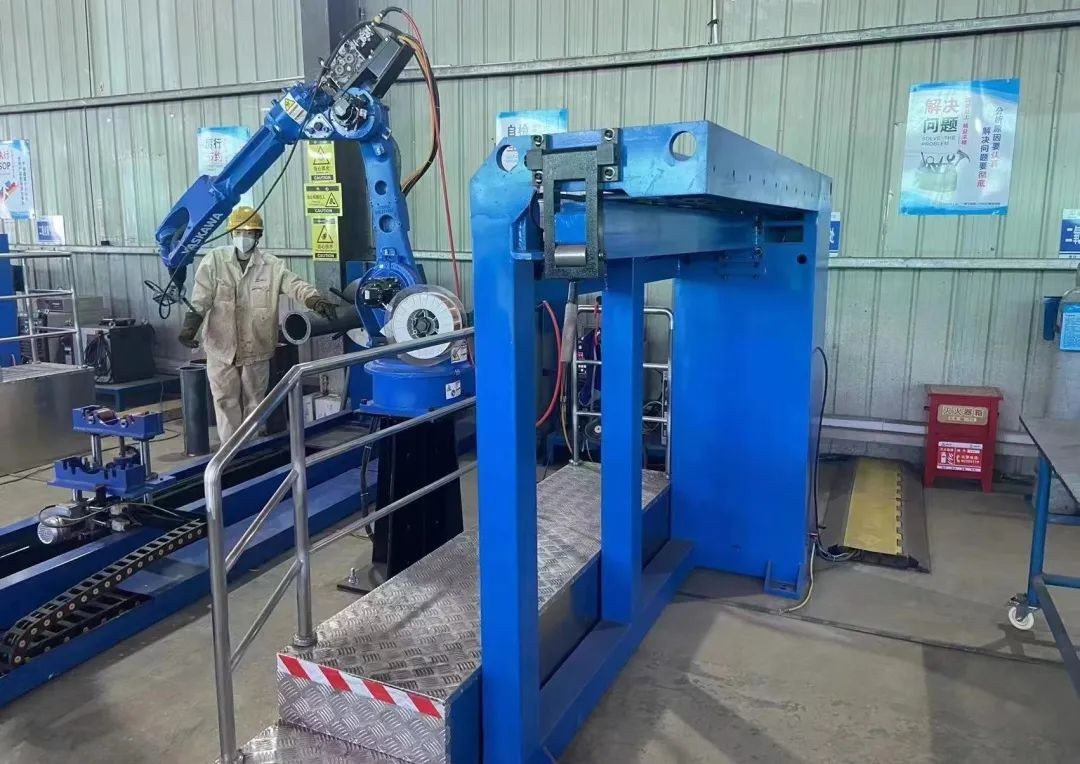 經研發組成員日夜攻關,在完成了十幾項各類硬件、軟件問題優化改進后,全系列風管自動焊機器人工作站于2023年2月8日開啟首道焊口的焊接工作。