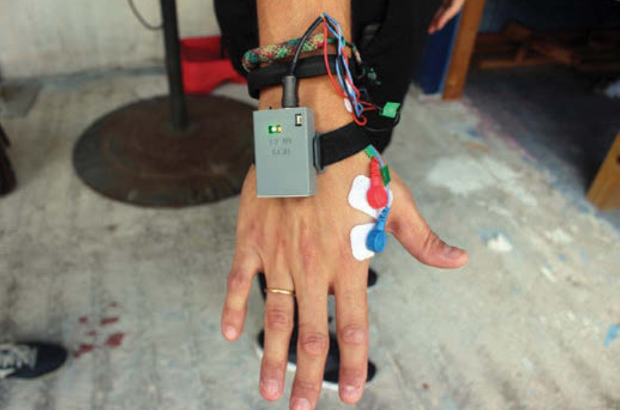 圖6:用于人體測(cè)試的肌電圖傳感器,放置在手上