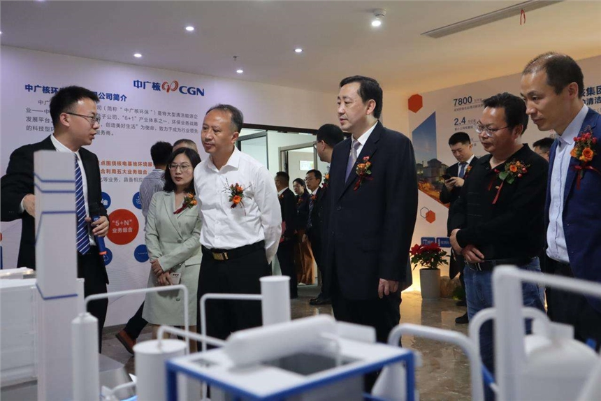 活動期間,還舉行了中廣核環保產品推介會,技術開發與應用中心副總經理靳軍濤就公司核心產品體系進行推廣介紹。隨后,中廣核新能源投資(深圳)有限公司江蘇分公司、安徽分公司、浙江分公司分別與中廣核華東核電籌建處、中廣核達勝科技有限公司及中廣核環保產業華東分公司簽定四方協同協議。揭牌儀式后,領導和嘉賓還參觀了華東分公司展廳。