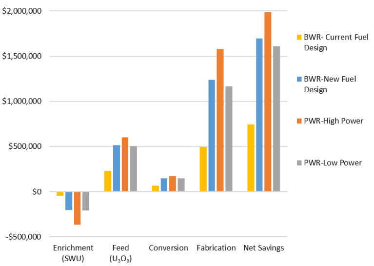 在這一初步評估之后,EPRI對其他事故場景進(jìn)行了研究,進(jìn)行了燃料循環(huán)優(yōu)化評估(增加濃縮和排放燃耗),并探索了以前沒有研究過的其他優(yōu)勢。