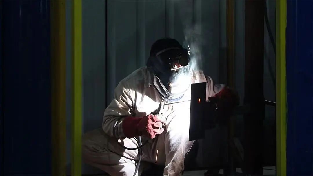 在現場,該工作站主要由2套焊接機器人焊接系統、4套焊接工裝及配套激光視覺跟蹤系統構成,可開展不同種類的自動焊接作業。機器人還首次采用一套焊接系統搭配兩套工裝夾具使用,可同時兩側錯峰開展焊接作業,進一步提高了焊接效率。該項目負責人介紹,該技術焊接過程穩定、焊接質量可靠,焊接效率較手工焊工藝提高了3倍。