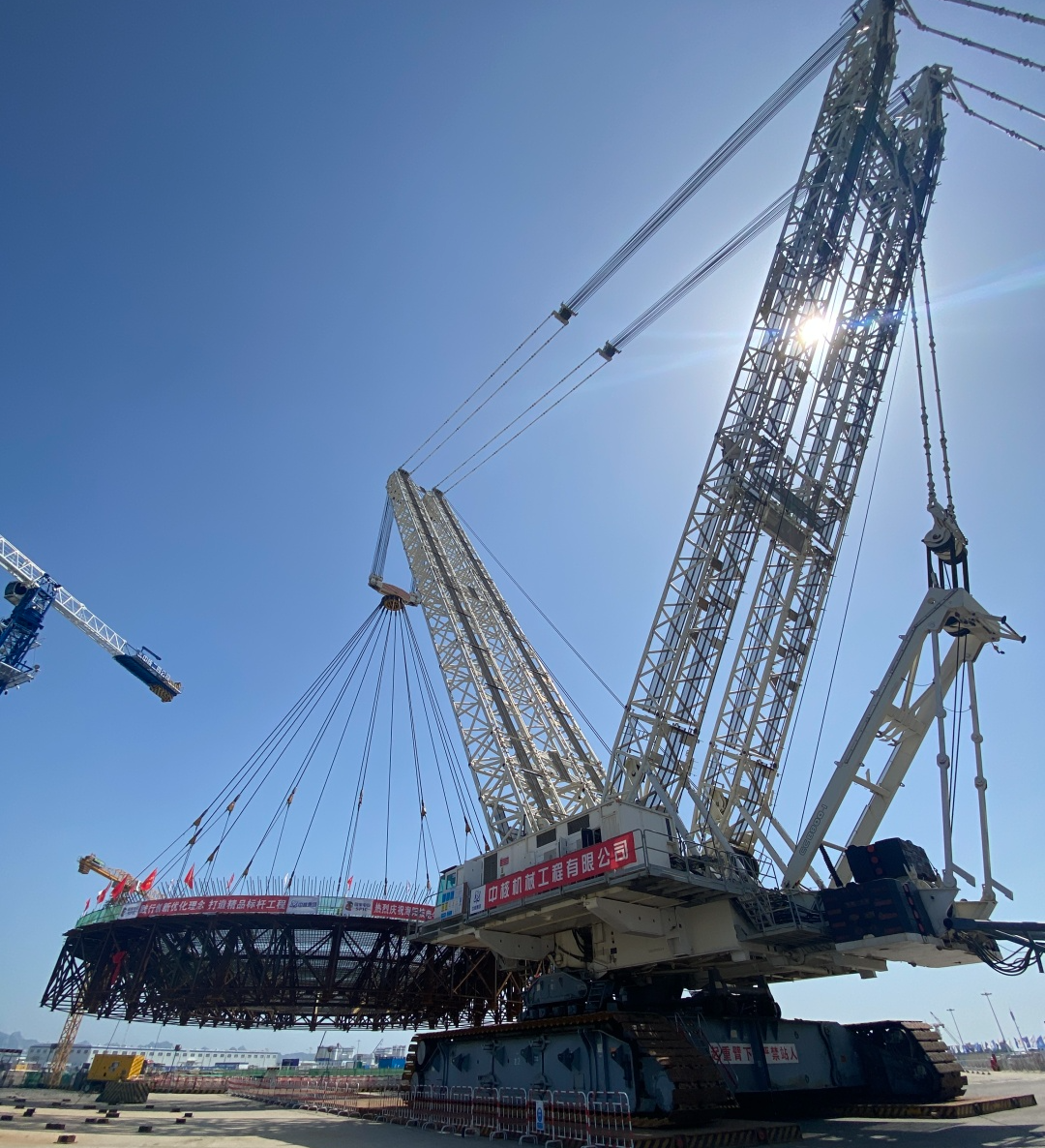 本次吊裝任務頗具難度,中核機械工程海陽吊裝項目團隊攻堅克難、厚積薄發,展示出安全、精湛的專業化水平。一直以來,中核機械工程海陽核電二期吊裝項目團隊,實施黨建與項目建設、安全管理深度融合,黨員沖鋒在前,緊抓“安全、質量、進度、管理”不放松。項目團隊堅持以黨建為引領,凝聚帶領團隊克服模塊重量分布不均、結構受力復雜、吊裝易變形等困難,充分發揮支部戰斗堡壘和黨員先鋒模范作用,快速響應并協調解決吊裝過程中出現的各種問題。同時采用沙盤推演及模擬吊裝的方式進行多輪次的檢查驗證工作,通過現場測量、負載行走、大臂旋轉、變幅工序等一系列專業吊裝動作,提前定位了3200t起重機的最佳起吊位置、就位位置、行走路線,并制定了專項施工計劃,優化了模塊吊裝、安裝施工工藝。