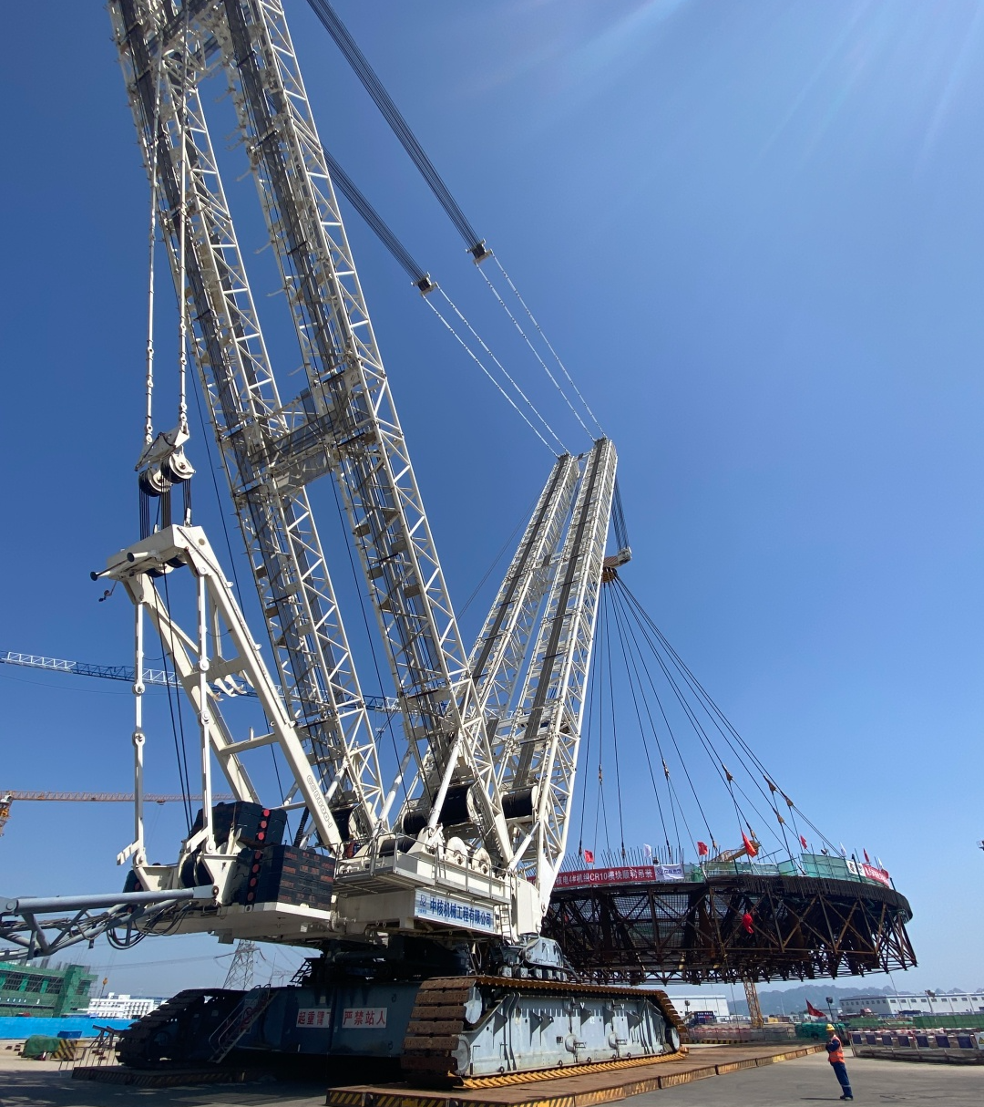 海陽核電4號機組CR10模塊的本體直徑大、結構偏心,需通過增加調平配重的方式,進行多次調平,吊裝工作難度非常大,無論是對3200t起重機的性能,還是對起重司機的操作能力均極具挑戰性。