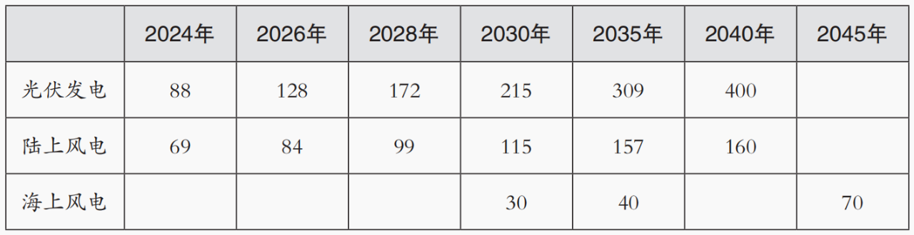 表 德國可再生能源裝機容量增長目標(單位:吉瓦)