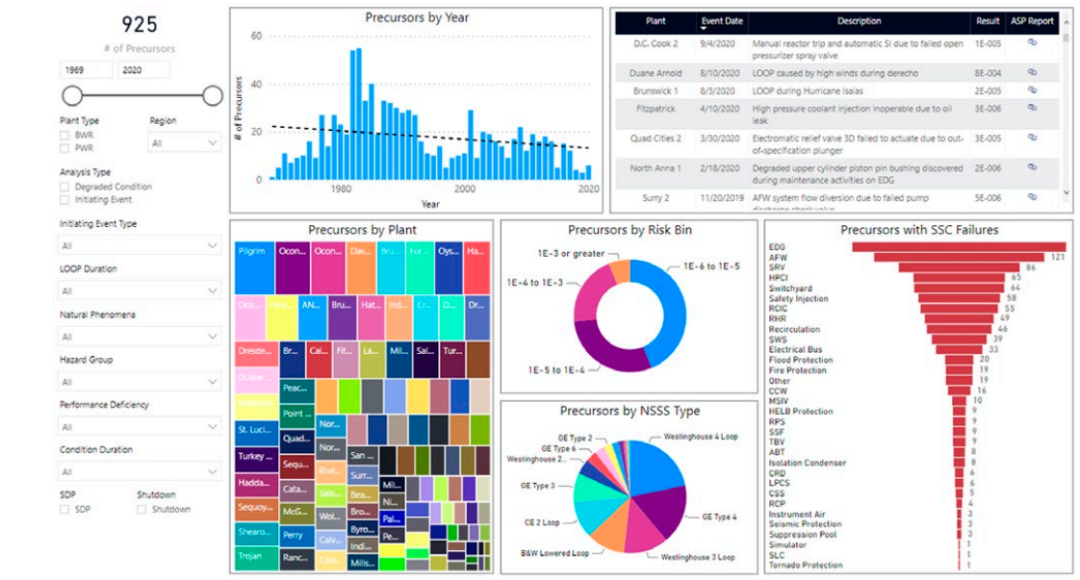 顯示核管理委員會(huì)事故序列前體計(jì)劃風(fēng)險(xiǎn)見解的示例儀表盤。