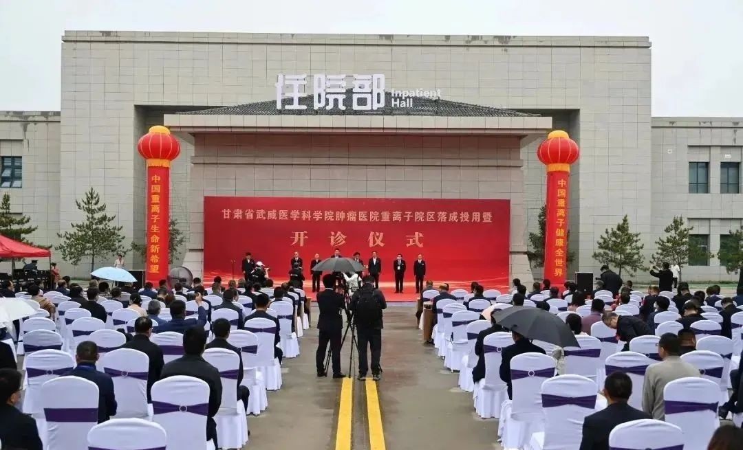 5月28日,甘肅省武威醫學科學院腫瘤醫院重離子院區落成投用暨開診儀式在重離子院區住院樓前舉行。