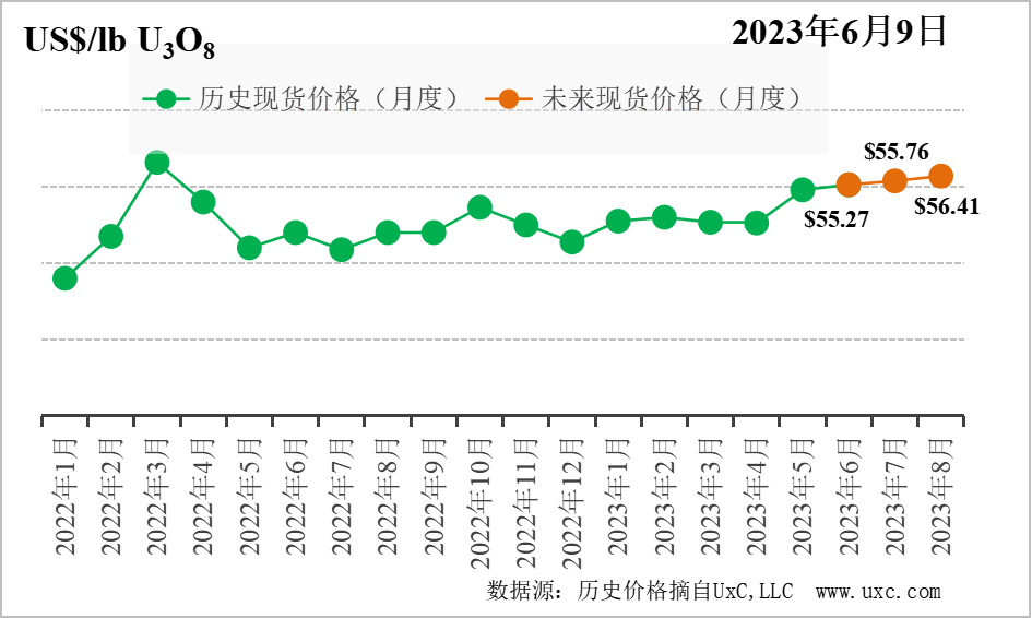 2023年6月9日,中國核能行業協會發布第31期“CNEA國際天然鈾價格預測指數(2023年6月)”。