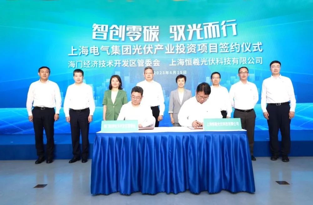 6月15日,上海電氣光伏產業投資項目簽約儀式暨上海電氣集團恒羲光伏科技(南通)有限公司落地海門成立儀式舉行。儀式上,上海電氣全資子公司上海恒羲光伏科技有限公司(以下簡稱“恒羲光伏公司”)與南通市海門區人民政府簽署了產業投資協議,并舉辦南通子公司成立儀式。南通市委書記吳新明,上海電氣集團黨委書記、董事長冷偉青出席見證,并就加快推動項目建設、進一步深化合作開展深入交流。