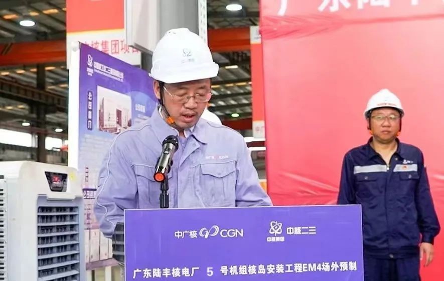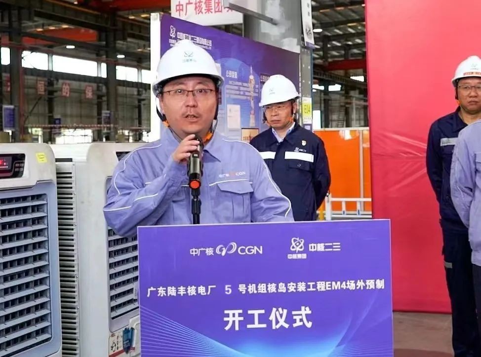 中廣核陸豐核電有限公司副總經(jīng)理張士朋宣布開工陸豐核電作為廣東省粵東地區(qū)首個核電項目,是積極響應(yīng)國家核電發(fā)展“十四五”規(guī)劃和2035年遠景目標綱要“積極有序推進沿海三代核電建設(shè)”重要核電項目。EM4場外預(yù)制工作作為核島安裝工程先行工作,是保障后續(xù)核島現(xiàn)場安裝目標節(jié)點如期完成的基礎(chǔ)。