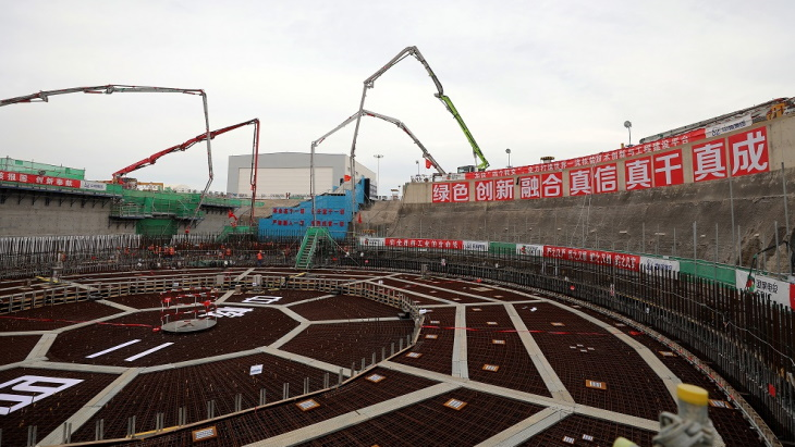 中國海陽核電站4號(hào)機(jī)組核島地基的第一塊混凝土正在澆筑(圖源:SNERDI)
