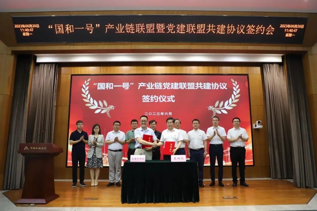 簽約儀式上,公司黨委副書記、副總經理顏巖,公司總經理助理田林分別與雁棲湖基礎制造技術研究院(北京)有限公司、鄭州機械研究所有限公司、國家電投集團科學技術研究院有限公司、北京雷蒙賽博核裝備技術研究有限公司和陜西特種橡膠制品有限公司簽署了《“國和一號”產業鏈聯盟共建協議》及《“國和一號”產業鏈黨建聯盟共建協議》。