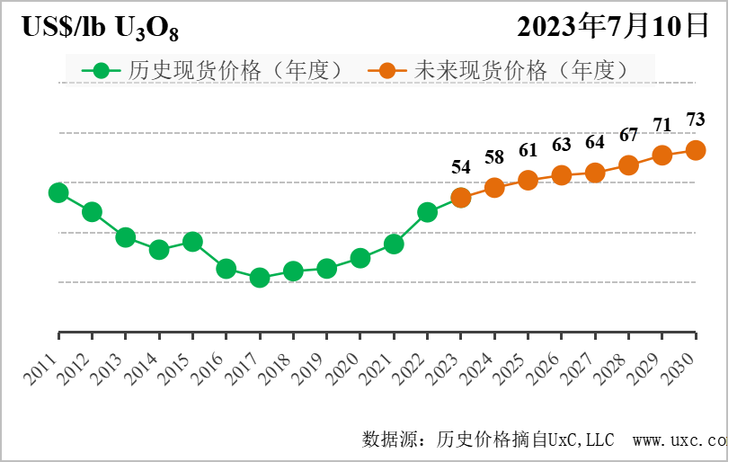 2023年8月10日,中國核能行業協會發布第33期“CNEA國際天然鈾價格預測指數(2023年8月)”。