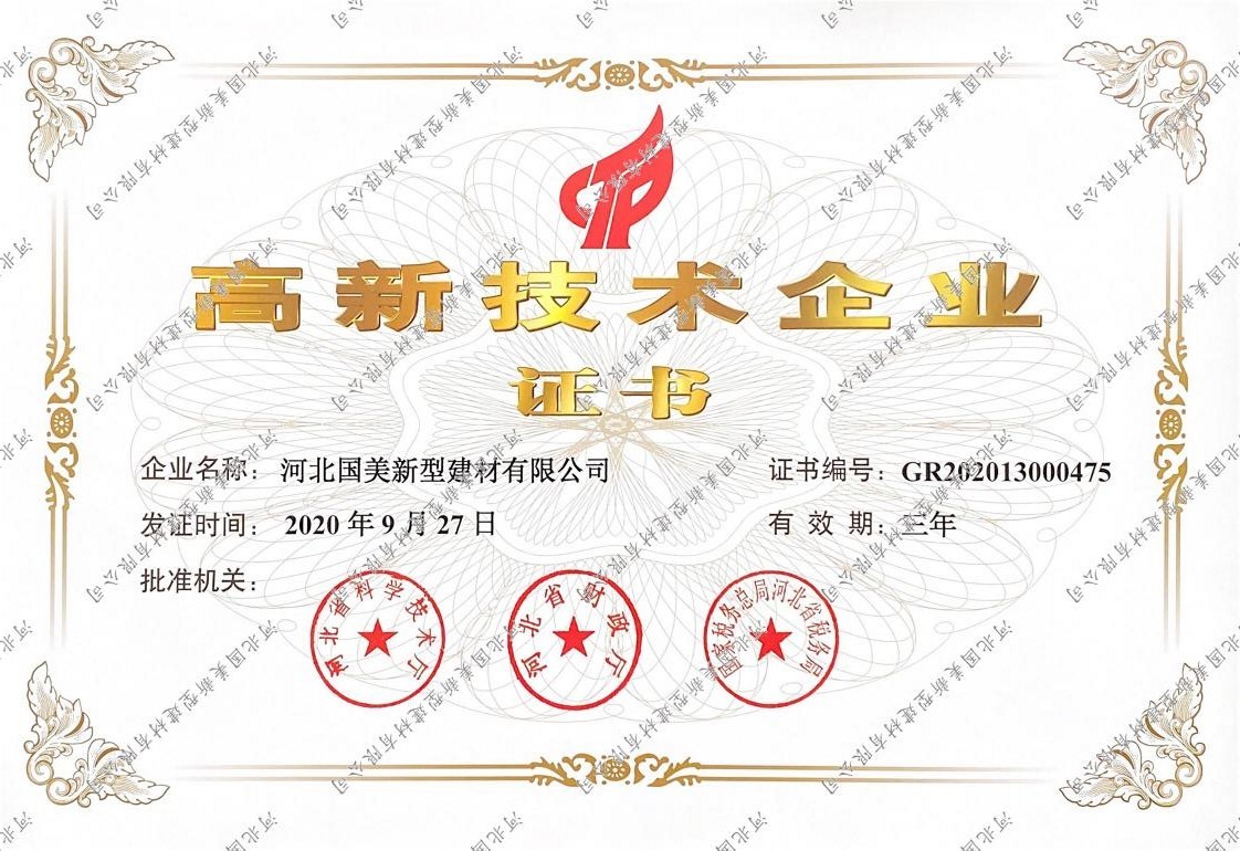 河北國(guó)美新型建材有限公司不斷壯大的同時(shí),在科學(xué)發(fā)展方面取得了豐碩的成果。共開(kāi)展研發(fā)項(xiàng)目28項(xiàng),其中授權(quán)發(fā)明專(zhuān)利2項(xiàng),實(shí)用新型專(zhuān)利18項(xiàng)。被認(rèn)定為“高新技術(shù)企業(yè)”“保溫材料研究院”“河北省企業(yè)技術(shù)中心”“河北省專(zhuān)精特新示范企業(yè)”“河北省專(zhuān)精特新中小企業(yè)”“行業(yè)先進(jìn)單位”。作為“中國(guó)絕熱節(jié)能材料協(xié)會(huì)”常務(wù)理事單位。“中國(guó)鋼結(jié)構(gòu)協(xié)會(huì)、中國(guó)耐火材料協(xié)會(huì)、中國(guó)硅酸鹽協(xié)會(huì)耐火材料分會(huì)、中國(guó)聲學(xué)學(xué)會(huì)”會(huì)員單位,參與了多項(xiàng)國(guó)家標(biāo)準(zhǔn)、團(tuán)體標(biāo)準(zhǔn)的制定、修訂工作。