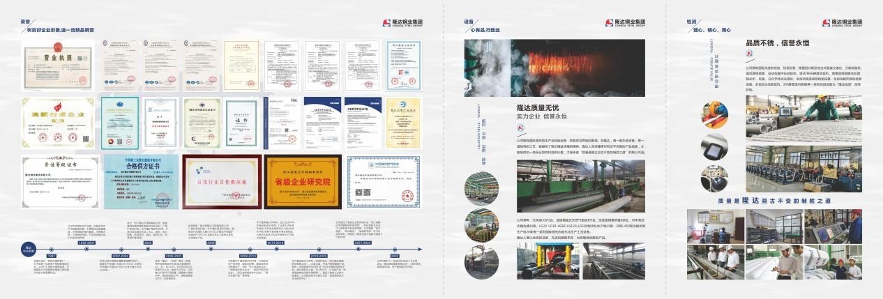公司質(zhì)保體系完善:先后通過(guò)了中國(guó)特種設(shè)備制造許可證TS-A1、A2、B級(jí);AD2000-W0德國(guó)TUV認(rèn)證;PED 2014/68/EU歐盟承壓設(shè)備認(rèn)證及中國(guó)船級(jí)社(CCS)的質(zhì)量、環(huán)境、職業(yè)健康三體系認(rèn)證。產(chǎn)品“處鋼牌”不銹鋼榮獲浙江省名牌,公司被授予省級(jí)企業(yè)研究院及省級(jí)高新技術(shù)企業(yè)研發(fā)中心,已授權(quán)發(fā)明專利3項(xiàng),實(shí)用新型專利33項(xiàng),2016年被海關(guān)總署授予麗水市同行業(yè)唯一一家“中國(guó)外貿(mào)出口先導(dǎo)指數(shù)樣本企業(yè)”,2017年獲縣政府質(zhì)量獎(jiǎng),2018年研發(fā)的新產(chǎn)品“耐高溫耐腐蝕無(wú)縫不銹鋼管”通過(guò)了省級(jí)工業(yè)新產(chǎn)品(新技術(shù))鑒定,技術(shù)達(dá)到國(guó)內(nèi)領(lǐng)先水平。2019年“處鋼牌”不銹鋼被評(píng)為省“特優(yōu)新品牌”,2020年榮獲“浙江省信用管理示范企業(yè)”桂冠。2021年公司作為主要起草單位完成了“浙江制造”標(biāo)準(zhǔn)《輸送管道用高承壓不銹鋼無(wú)縫鋼管》的制定并順利通過(guò)評(píng)審;此外通過(guò)“兩化融合”管理體系認(rèn)證,為企業(yè)的科技信息化環(huán)境注入了新動(dòng)能。