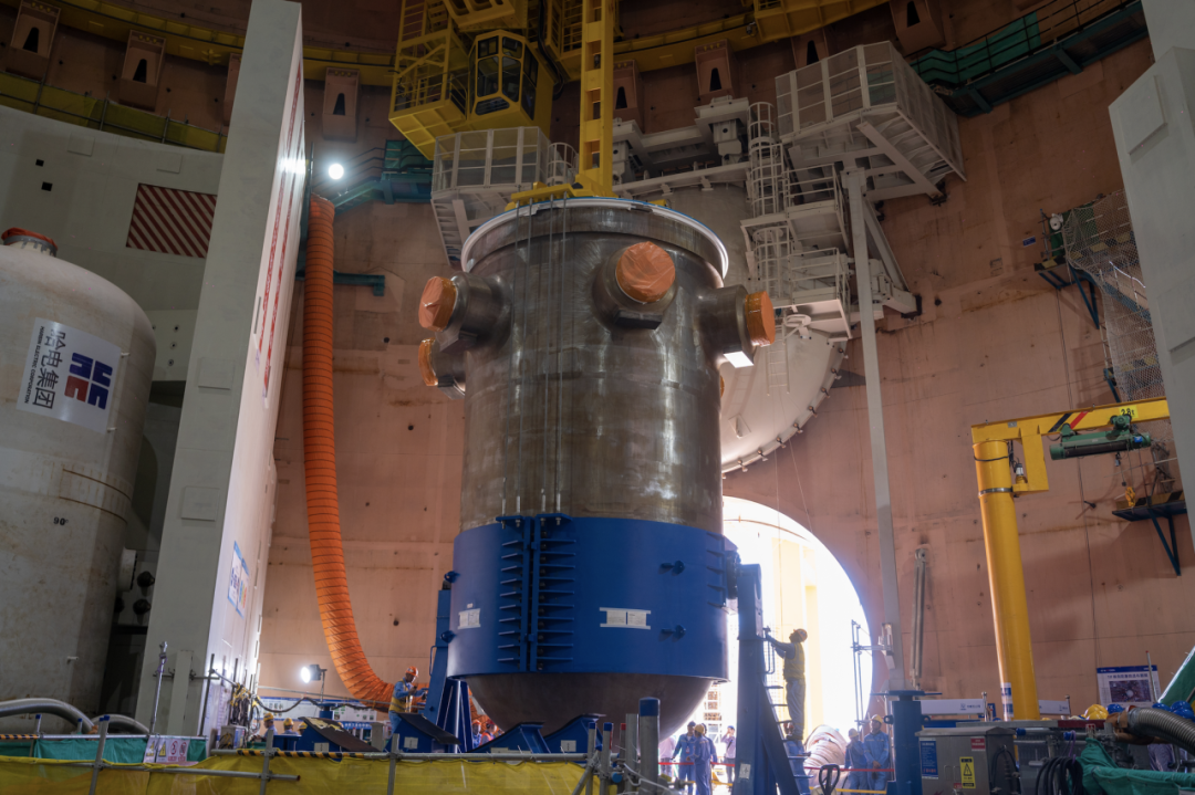 9月15日9時27分,由中核五公司承建的中廣核三澳核電1號機組“華龍一號”反應堆壓力容器開始起吊翻轉,歷經近8小時,于17時08分順利吊裝就位。反應堆壓力容器吊裝就位意味著整個核島設備安裝有了“中心點”,為后續主管道焊接創造有利條件,標志著中廣核三澳核電1號機組重型主設備吊裝的結束。