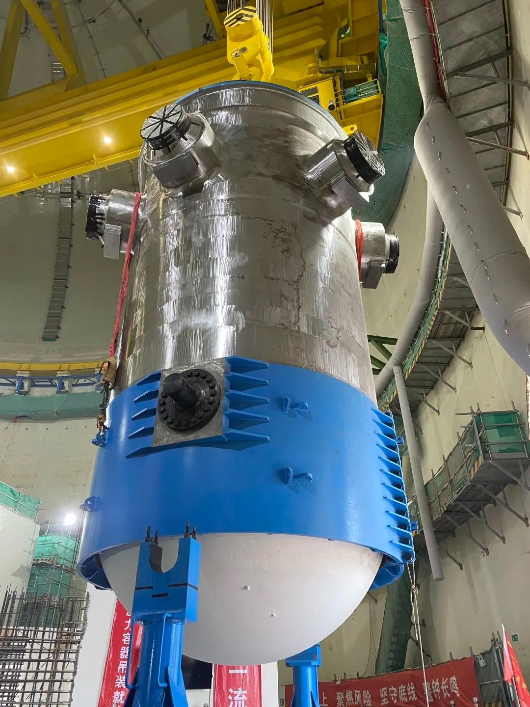 海南昌江核電3號機組壓力容器于9月24日18時36分順利吊裝就位。吊裝過程安全有序,提前一級計劃里程碑節點67天完成,這是該機組繼一環和三環蒸汽發生器吊裝成功之后,主設備吊裝工作再次取得的重大進展,為后續主管道焊接創造了先決條件,為主線施工按計劃順利開展提供了保障。