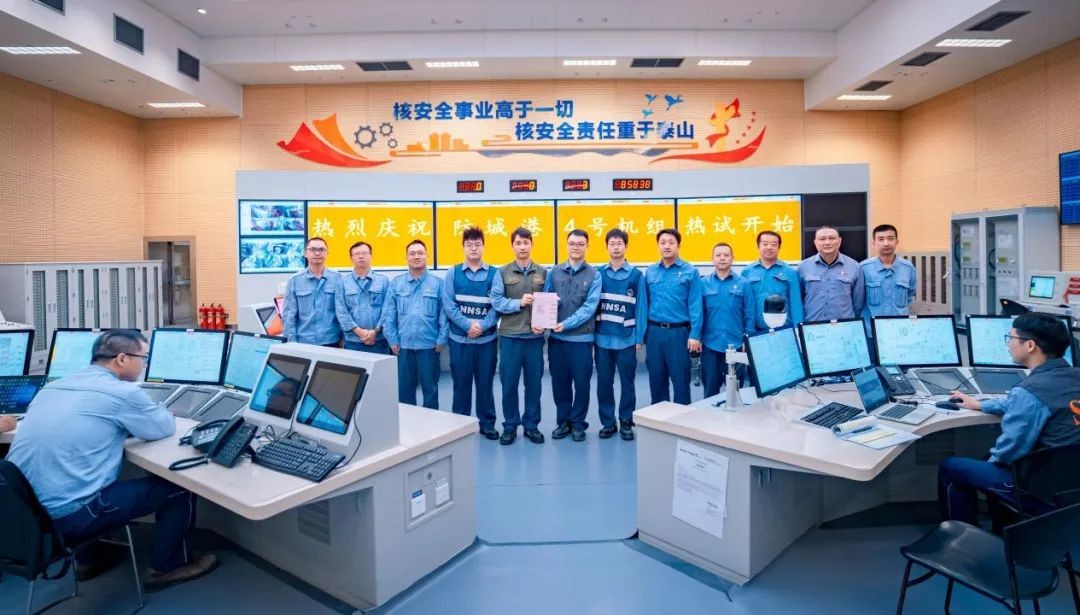 9月25日上午9時,在華南核與輻射安全監(jiān)督站防城港二期生產(chǎn)工程大團(tuán)隊各單位代表的共同見證下,當(dāng)班值長向試驗負(fù)責(zé)人正式頒發(fā)試驗票標(biāo)志著中廣核廣西防城港核電站4號機(jī)組熱態(tài)功能試驗正式開始。