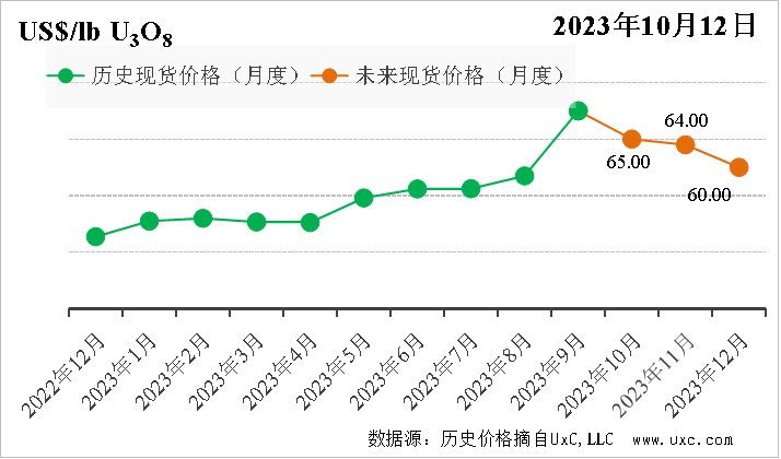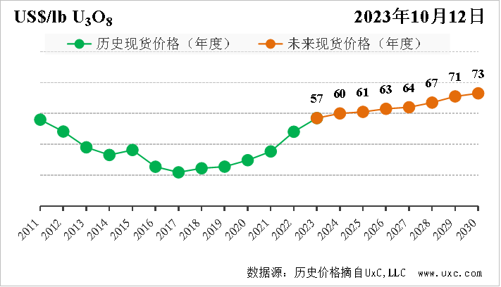 2023年10月12日,中國核能行業協會發布第35期“CNEA國際天然鈾價格預測指數(2023年10月)”。