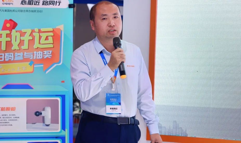 展會首日,中電電氣精心準(zhǔn)備了特色產(chǎn)品分享會。公司黨委副書記連俊山、銷售總監(jiān)蘇翔飛在分享會開幕式致辭。