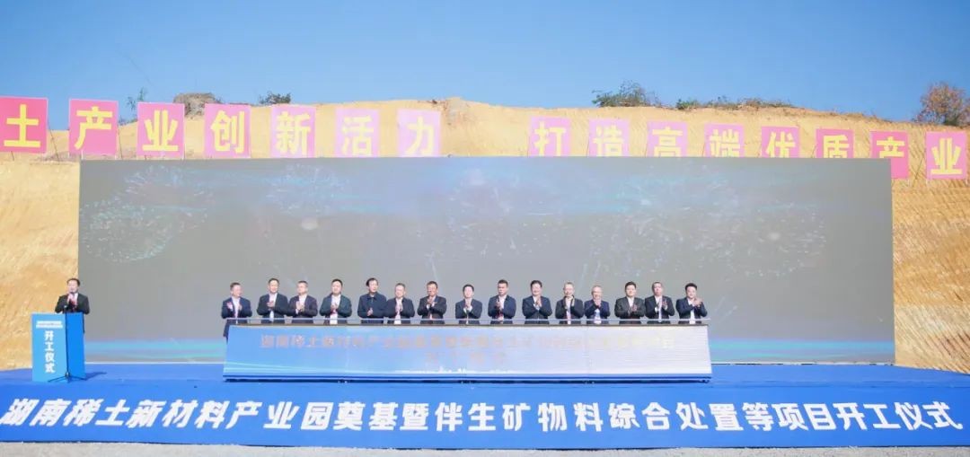 2023年11月28日,湖南稀土新材料產業園奠基暨伴生礦物料綜合處置等項目開工儀式在湖南永州零陵區黃田鋪鎮舉行。中核環保有限公司總經理、黨委副書記趙翼鑫受邀出席。湖南省政協副主席、民盟湖南省委會主委何寄華致辭并宣布開工,國家生態環境部、湖南省發展和改革委員會、湖南省生態環境廳、湖南省國資委、永州市、中國稀土集團、中南大學等有關領導出席活動。
