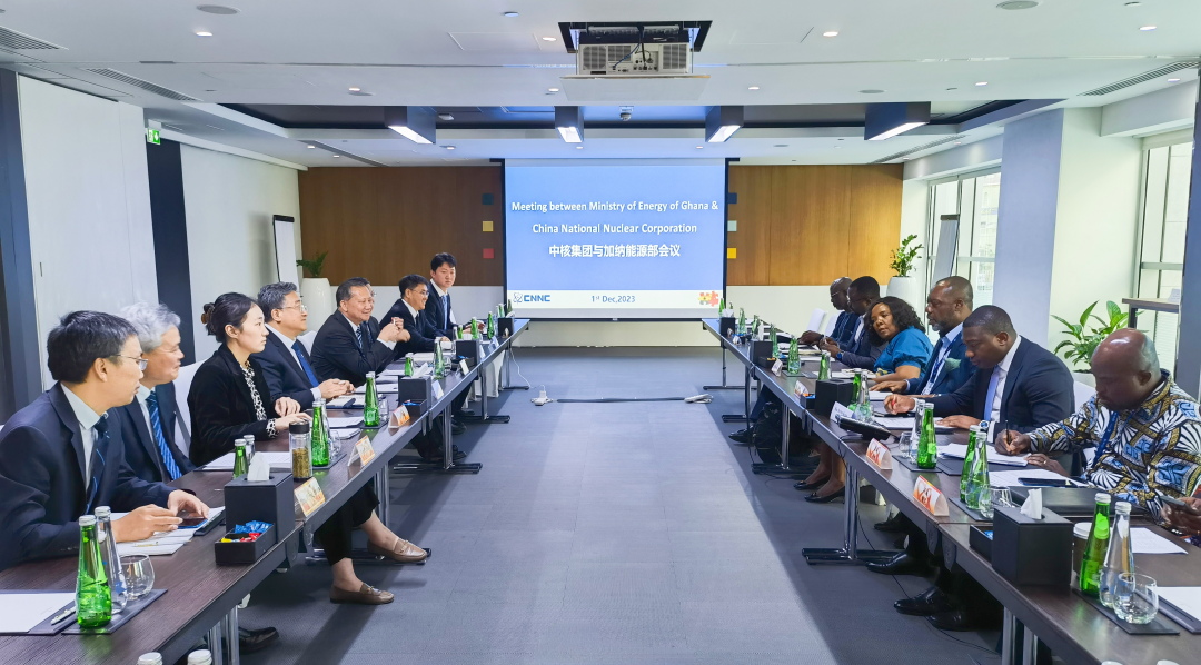 為進一步推動核能國際合作,促進核能在應對氣候變化中發揮更大作用,11月30日至12月1日第28屆聯合國氣候變化大會(COP28)期間,中核集團董事長余劍鋒率團出訪阿聯酋,與阿聯酋核能公司董事總經理兼總裁哈馬迪舉行會談,雙方簽署了第三國核能聯合開發與投資的諒解備忘錄。訪阿期間,余劍鋒還應約會見了世界核協會總干事萊昂、加納能源部長普倫佩,就進一步深化合作達成共識。