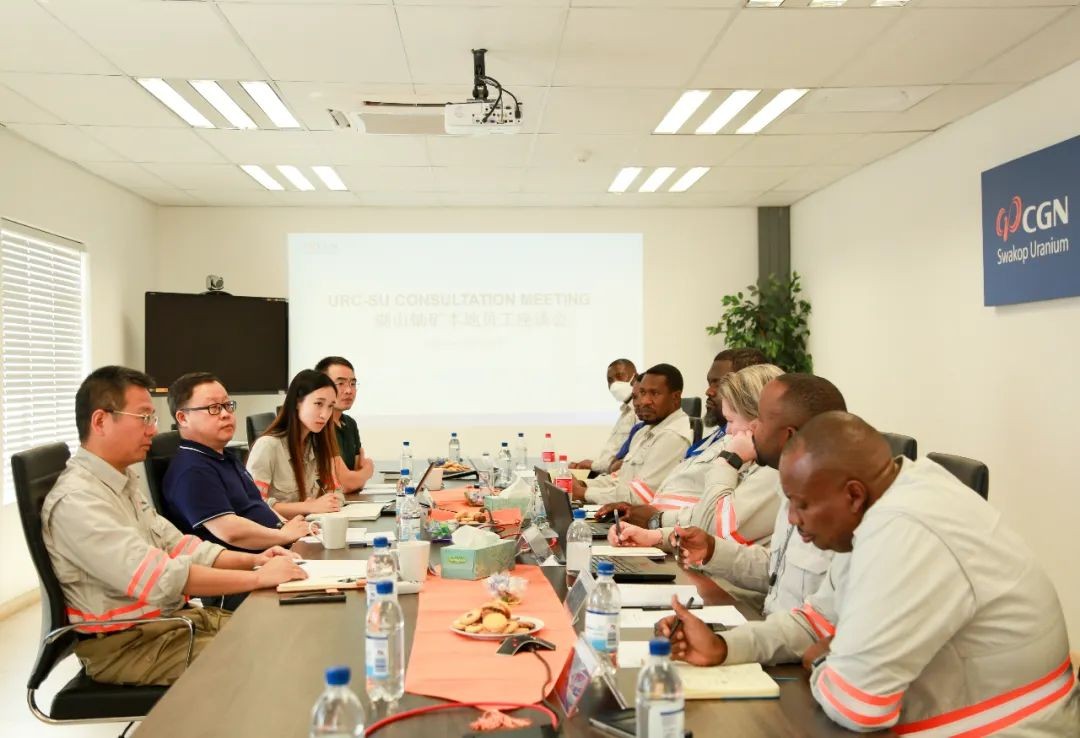 當(dāng)天下午,安軍靖與斯科公司納方管理層人員開展座談。會上,他對管理層提出三點(diǎn)要求:一是要加強(qiáng)文化引導(dǎo)與融合。斯科公司不僅是納米比亞企業(yè),更是全球化企業(yè),要為促進(jìn)團(tuán)隊(duì)融合做出努力,這是管理層的重要職責(zé)。二是要善于用技術(shù)解決問題。要持續(xù)引進(jìn)新技術(shù),優(yōu)化水冶廠、堆浸和海水淡化廠項(xiàng)目等關(guān)鍵問題的解決方式。三是要注重團(tuán)隊(duì)建設(shè)。要選對人,用對人,培養(yǎng)人。安軍靖最后表示,管理層要具有全球化視角,充分學(xué)習(xí)并吸收最先進(jìn)的知識,為把湖山鈾礦建設(shè)成為世界一流礦山奮斗不息。