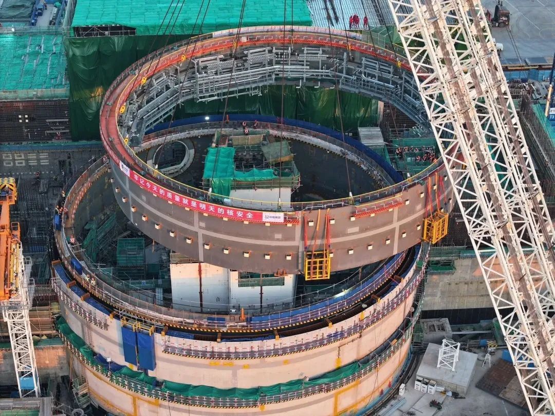 12月25日16時56分,海陽核電3號機組鋼制安全殼筒體二環(CV2R)順利吊裝就位。整個吊裝過程安全可控,一氣呵成。這是繼反應堆壓力容器吊裝就位后一周內又一重點工作,為3號機組后續安全殼廠房、屏蔽廠房相關施工創造了良好條件。