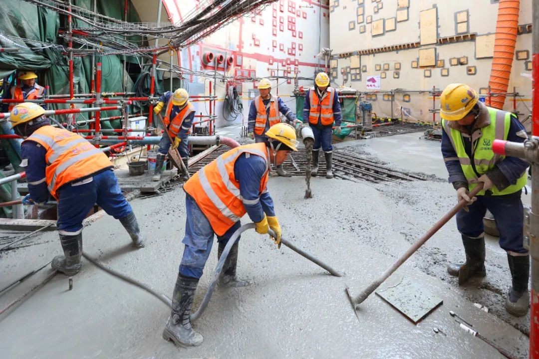 本次施工過程中,三門核電與各參建單位通力合作,踐行“六個一”一體化項目管理理念,提前組織施工盤點,梳理先決條件,按日制定施工計劃,完善施工邏輯,識別過程風險,并針對潛在不確定因素制定嚴格管控措施及應急預案,確保各項工作高質量開展、高效落實,最終順利完成澆筑任務。