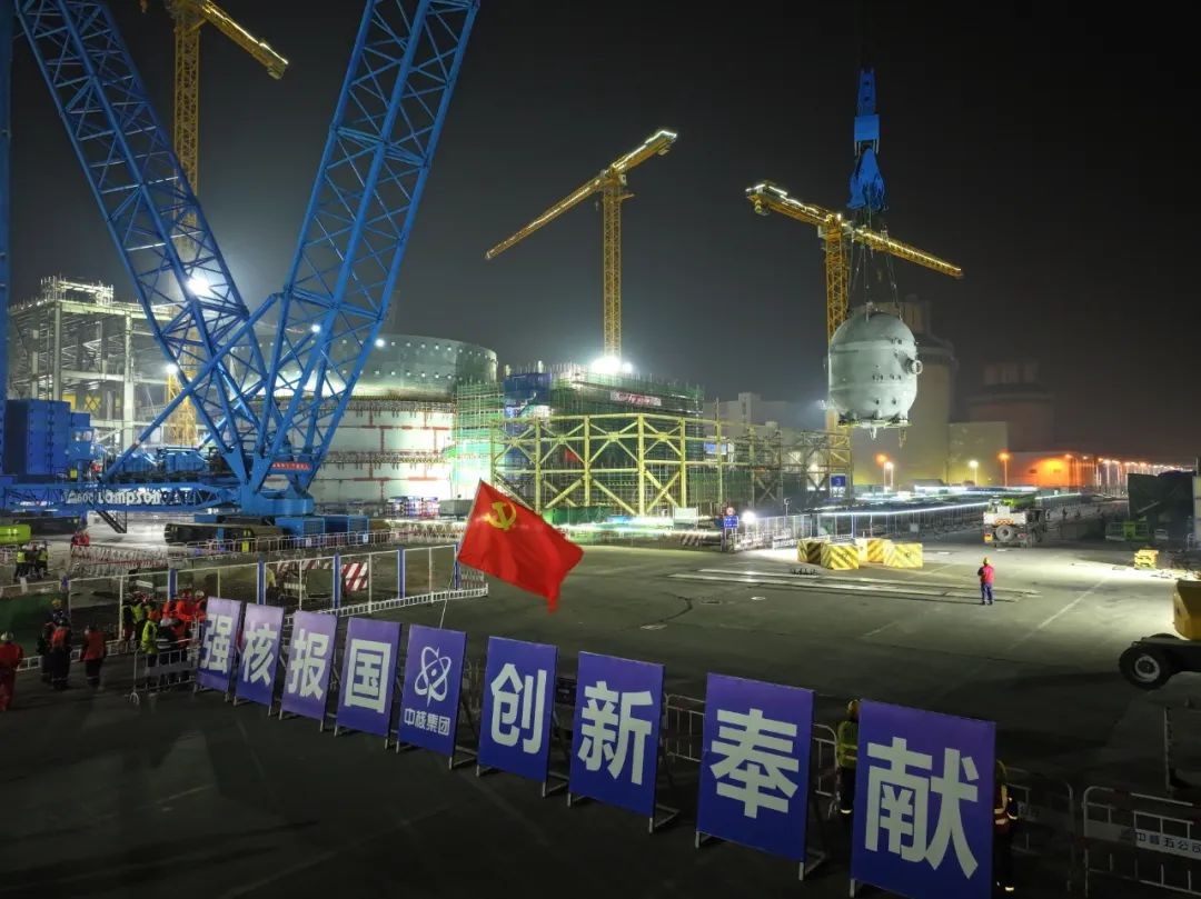 1月11日20時19分,三門核電3號機組核島反應堆廠房堆芯補水箱B順利吊裝就位,拉開了2024年核島大件吊裝序幕。